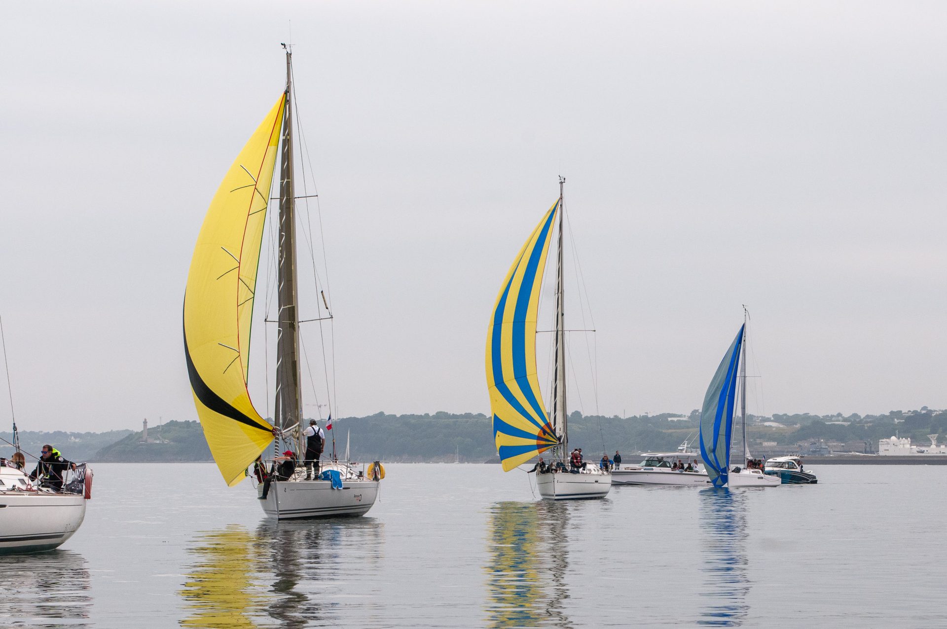 manches. Un souffle d’air suffisant malgré tout pour envoyer les spis et donner à la rade des